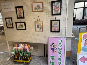 社会福祉協議会ではバザーの出店、手作り体験コーナー、デイサービス・いきいき利用者さんの作品展示